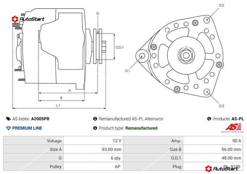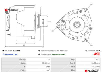 | Зовнішній діаметр шківа O.D.1[мм] | O.D.1 | 48.00 |