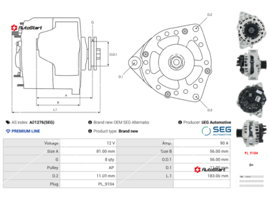 Кількість пазів шківа[шт] | G | 8 |