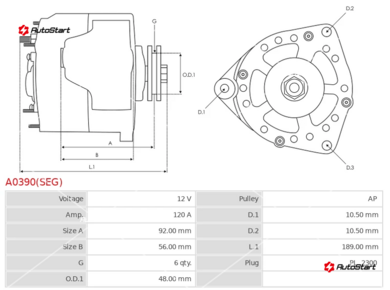 Кількість пазів шківа[шт] | G | 6 |