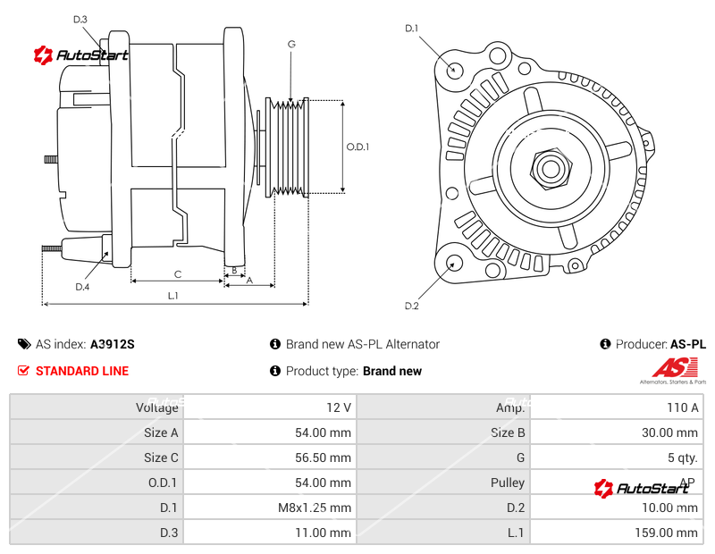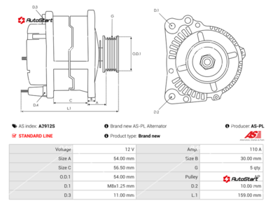 | Зовнішній діаметр шківа O.D.1[мм] | O.D.1 | 54.00 |