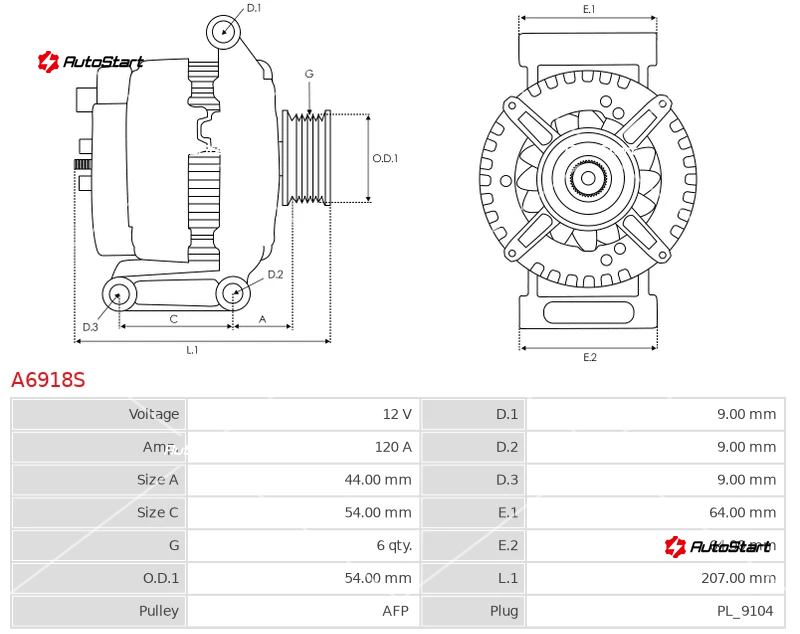 | Діаметр отвору D.1 | D.1 | 9.00 |