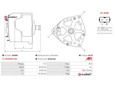 | Довжина L.1[мм] | L.1 | 191.00 |