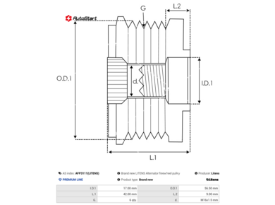| Загальна довжина шківа L.1[мм] | L.1 | 42.00 |