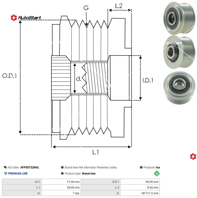 | Внутрішній діаметр I.D.1[мм] | I.D.1 | 17.00 |