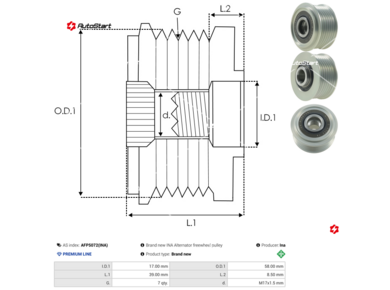| Загальна довжина шківа L.1[мм] | L.1 | 39.00 |
