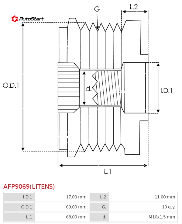 Кількість канавок шківа G.[мм] | G. | 10 |