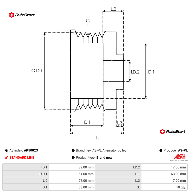 | Кількість пазів G.[шт.] | G. | 10 |
