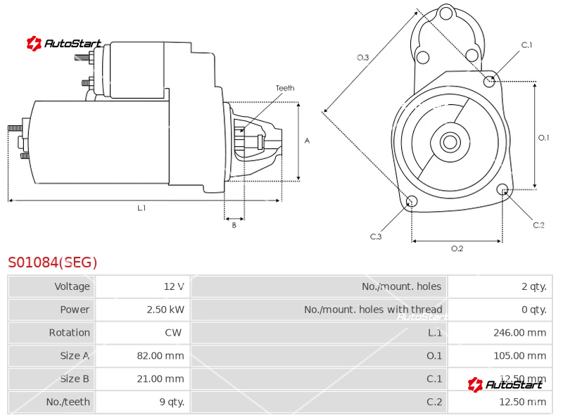 | Відстань між кріпильними отворами O.1[мм] | O.1 | 105.00 |