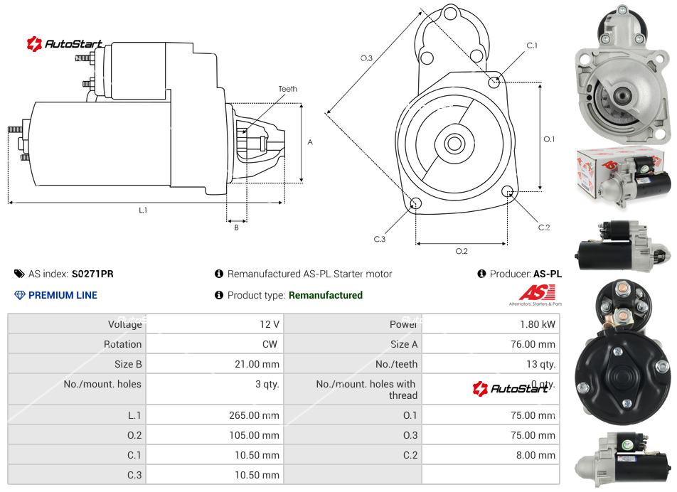 | Довжина L.1[мм] | L.1 | 265.00 |