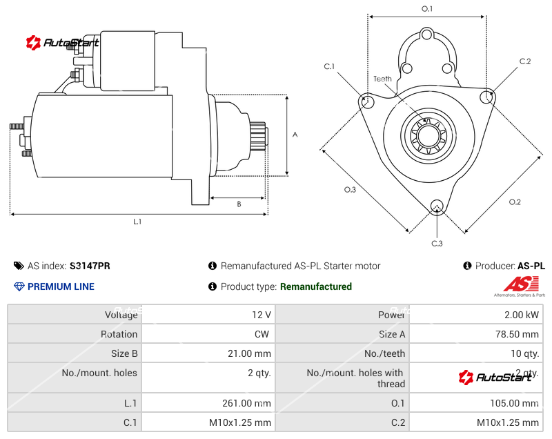 | Довжина L.1[мм] | L.1 | 261.00 |