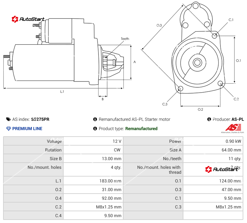 | Відстань між кріпильними отворами O.1[мм] | O.1 | 124.00 |