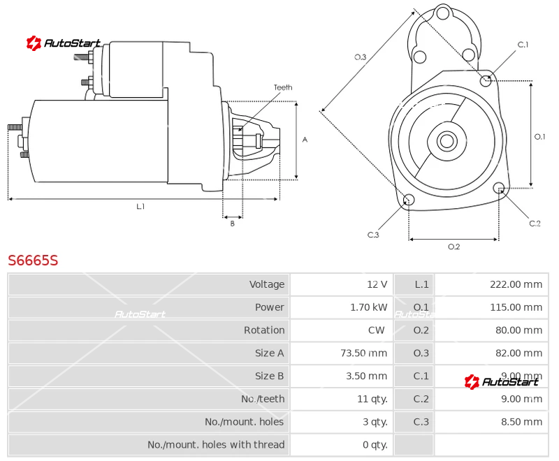 | Довжина L.1[мм] | L.1 | 222.00 |