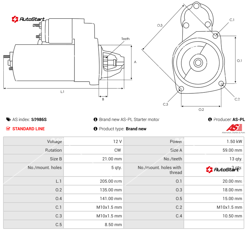 | Довжина L.1[мм] | L.1 | 205.00 |