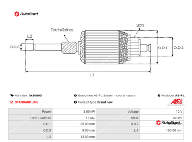 | Діаметр валу ротора передня втулка O.D.3[мм] | O.D.3 | 9.00 |
