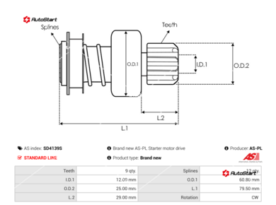 | Діаметр обойми бендикса D[мм] | D | 60.80 |