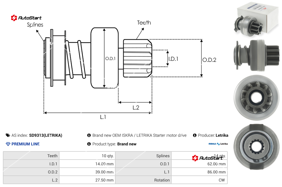 | Діаметр обойми бендикса D[мм] | D | 62.00 |
