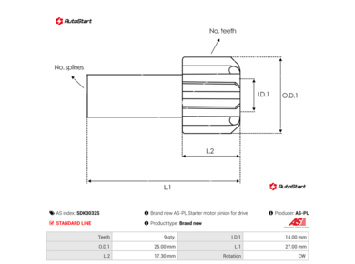 | Діаметр обойми бендикса D[мм] | D | 25.00 |