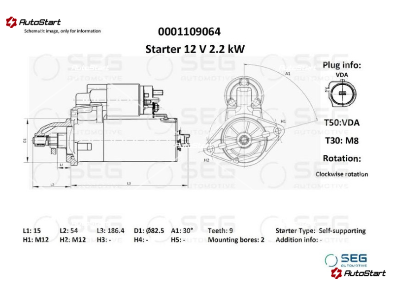 | Клема | клема 30/B+(M8x1.25), клема 50 Terminal | |