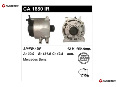 CARGO 241333, KRAUF ALV1680MA, ALV1680NW, ALV1680UH, ALV1680, MOTORHERZ ALV1680WA, ZAUFER 301N20429Z, EUROTEC 12090053, 12090549, DRI 5251141502, SPIDAN 6129SP, SP6129, FRIESEN 9090225F, 9090225, EDR 934088, ATL L69200, OPTIMUM OAN10424, STABECO WSD24815, AD KUHNER 301680RI, 301680RIK, 301680RIR, 301680RIV, CASCO CAL15128, CAL15128AS, CAL15128ES, CAL15128GS, CAL15128OS, CAL15128RS, AUTOELECTRO AEC1680