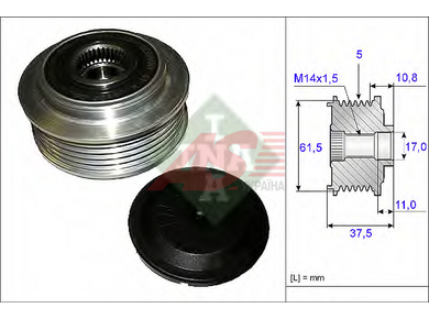 • Опис: Шкiв iнерцiйний ND, CG235696 (5PK,M14) Alfa,Fiat,Kia,Hyundai 2.4 JTD