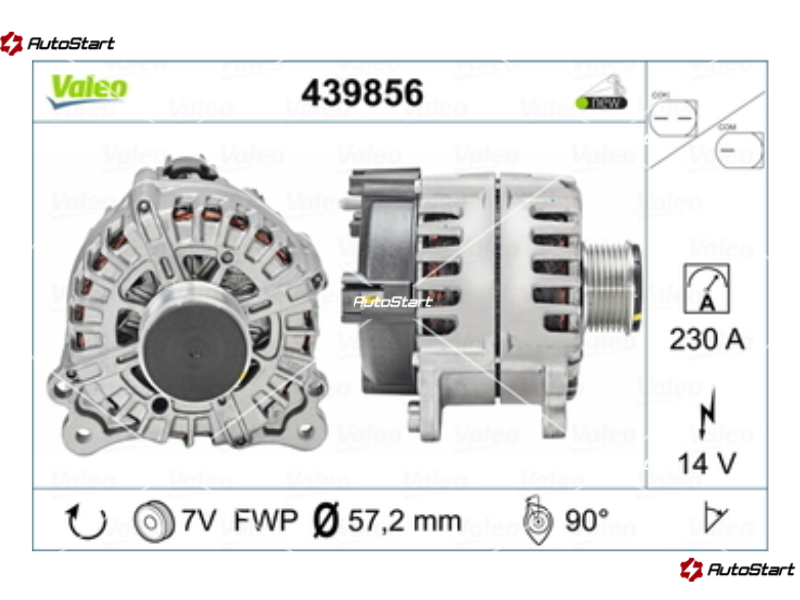 2016 Volkswagen Touareg V6 Lux (3.6 V6 GAS) Notes: VALEO IS THE OE SUPPLIER FOR THIS VEHICLE, 230 AMP, VALEO IS THE OE SUPPLIER FOR THIS VEHICLE, 230 AMP