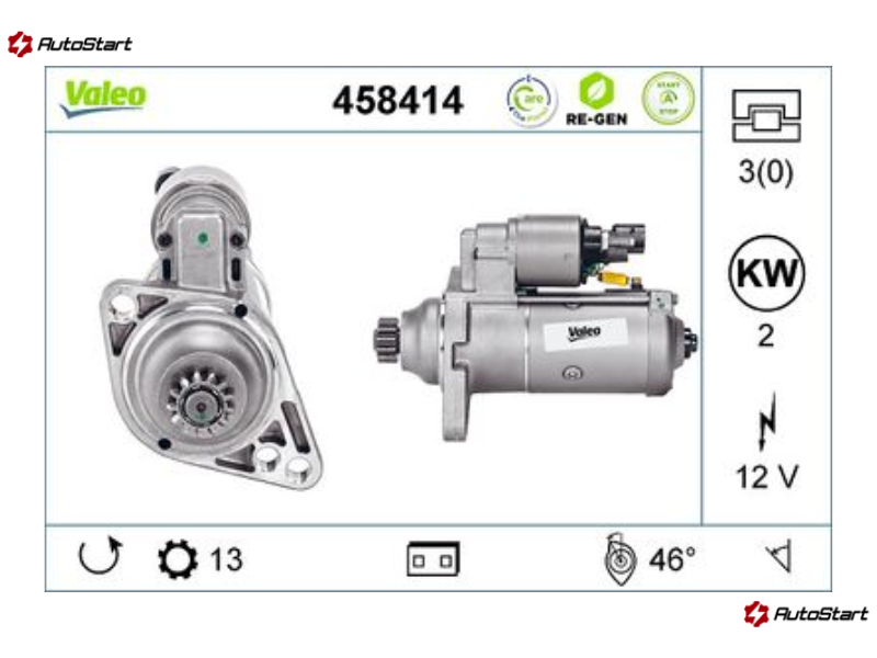 • Опис: Стартер 12В 2.0kW 13 зубів ACW VALEO 458414, ESW20ER121(B)