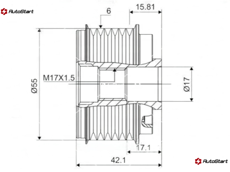 | Загальна довжина шківа L.1[мм] | L.1 | 42.10 |