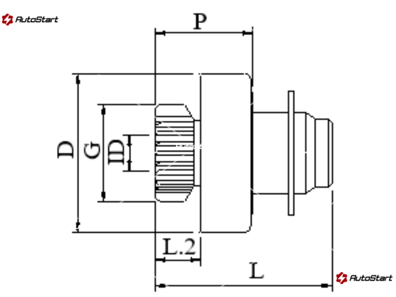 | Діаметр шестерні по впадинам зубів IG[мм] | IG | 19.45 |